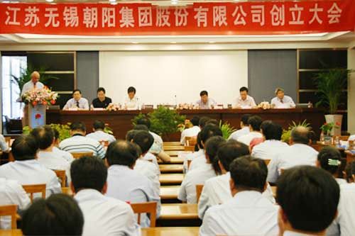 2008年7月18rishangwu,zaichaoyangjituanerloudahuichangjuxingjiangsuwuxichaoyangjituangufenyouxiangongsichuanglidahui。chaoyangjituangufengongsidechuanglilakailechaoyangqiyexinyilunfazhandexumu。