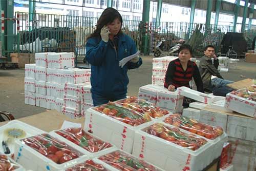 節日前的無錫朝陽農產品大市場一派繁忙,日成交業績連續攀升,蔬菜日成交量迫近1500噸,其中時令當家蔬菜--青蠶豆--更是突破250噸。