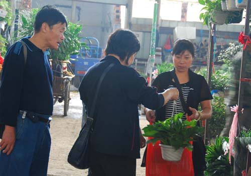 剛gang剛gang遷qian入ru槐huai古gu路lu朝chao陽yang花hua卉hui區qu經jing營ying的de原yuan無wu錫xi市shi南nan禪chan寺si花hua卉hui市shi場chang,節jie日ri前qian夕xi一yi派pai喜xi氣qi洋yang洋yang。雖sui然ran是shi臨lin時shi過guo渡du性xing經jing營ying位wei,但dan個ge個ge整zheng齊qi劃hua一yi,各ge種zhong盆pen花hua爭zheng奇qi鬥dou豔yan、綠意盎然。