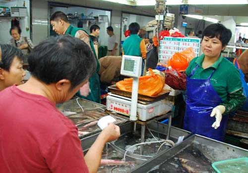 朝陽農貿市場一樓蔬菜區,來自無錫南北四城的人們,摩肩接踵,個個滿載而歸。水產區和二樓肉類熟食區同樣熱鬧非凡。