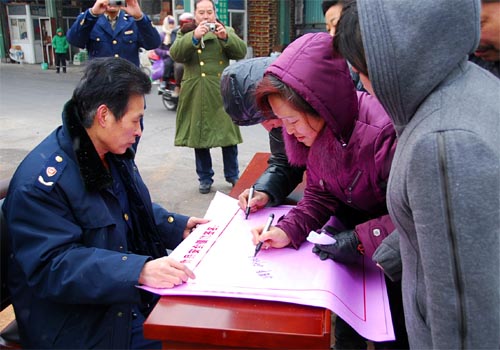 市場全體客商在“經營戶食品安全倡議書”上簽名。