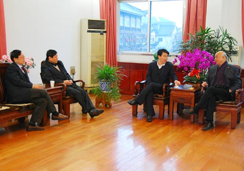 無錫朝陽集團董事長張海良、總經理楊興德、dangweishujiqianrenyunanchangqulingdaoyiqi,gongtongtantaojinyibufahuichaoyangjituanzainanchangqudequyuyoushi,jijituozhannanchansidiqudejingyingyetai,gongtongzhanwangchaoyangjituanhenanchangqugengjiameihaodemingtian。