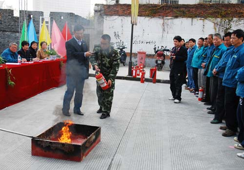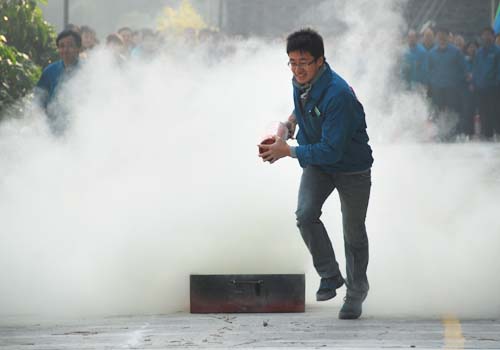 南長消防大隊李警官專程到場,向參賽的員工講解消防知識,並示範滅火器材的操作過程。