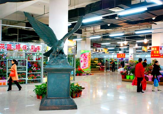 這尊雕塑以展翅的雄鷹為造型,落地3米多高,展翅寬幅達2米mi,精jing雕diao細xi刻ke,技ji藝yi精jing湛zhan,栩xu栩xu如ru生sheng,寓yu意yi深shen刻ke。雄xiong鷹ying是shi中zhong華hua民min族zu的de圖tu騰teng之zhi一yi,有you著zhe深shen厚hou的de文wen化hua內nei涵han,蘊yun含han著zhe勇yong於yu開kai拓tuo,不bu斷duan進jin取qu之zhi精jing神shen。鷹ying的de兩liang翼yi振zhen翅chi作zuo飛fei,呈cheng“V”型,取英文“VICTORY”,即為“勝利”之意,表達了朝陽集團實現多方共贏局麵的目標和信心。鷹也是世界上最長壽的鳥類,源於它有著破羽再生的能力,寓示著自我改革、浴火重生的勇氣和決心。“展翅雄鷹”陳列在文化工藝品市場,迅即成為市場亮點,受到市場經營戶和顧客的廣泛好評,成為市場的鎮館之寶。
