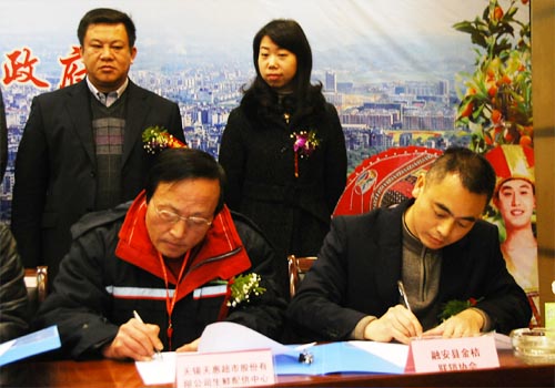 推介會上,來自無錫天惠超市等4家經銷商代表分別與融安縣金桔專業合作社簽訂了8000噸金桔購銷合同,預計交易金額達4000餘萬元。
