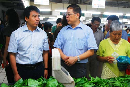 9月5日(ri),無(wu)錫(xi)市(shi)副(fu)市(shi)長(chang)史(shi)立(li)軍(jun)率(lv)市(shi)物(wu)價(jia)局(ju)局(ju)長(chang)蔡(cai)大(da)鋼(gang)及(ji)物(wu)價(jia)局(ju)副(fu)調(tiao)研(yan)員(yuan)金(jin)偉(wei)祖(zu)等(deng)市(shi)領(ling)導(dao)來(lai)到(dao)無(wu)錫(xi)朝(chao)陽(yang)集(ji)團(tuan)考(kao)察(cha)平(ping)價(jia)商(shang)店(dian)建(jian)設(she)情(qing)況(kuang)。考(kao)察(cha)團(tuan)一(yi)行(xing)先(xian)後(hou)考(kao)察(cha)了(le)天(tian)惠(hui)超(chao)市(shi)學(xue)前(qian)街(jie)店(dian)、朝陽店以及朝陽農貿市場。朝陽集團董事長張海良、總經理楊興德熱情接待了來訪領導,並就朝陽集團在平價商店建設方麵所作的主要工作進行了彙報。
