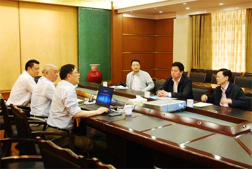 會上楊興德總經理通過幻燈片的形式,詳細介紹了朝陽集團的基本情況、改革創新及發展規劃,調研組一行對溯源體係在全國取得領先地位表示了肯定和讚賞。