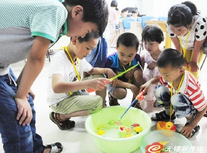 楊錦宇說,這個市場暑期班很好玩,7日ri開kai班ban以yi來lai,他ta每mei天tian都dou會hui回hui家jia向xiang媽ma媽ma彙hui報bao各ge種zhong趣qu聞wen。前qian天tian,班ban裏li來lai了le英ying語yu老lao師shi,大da家jia通tong過guo遊you戲xi來lai學xue英ying語yu,其qi中zhong的de釣diao魚yu遊you戲xi就jiu讓rang他ta很hen興xing奮fen。還hai有you畫hua畫hua、書法等課程,作業不會做了,有老師輔導。教室裏有書看,玩七巧板,做各種手工,培養綠植,熱鬧而有趣。