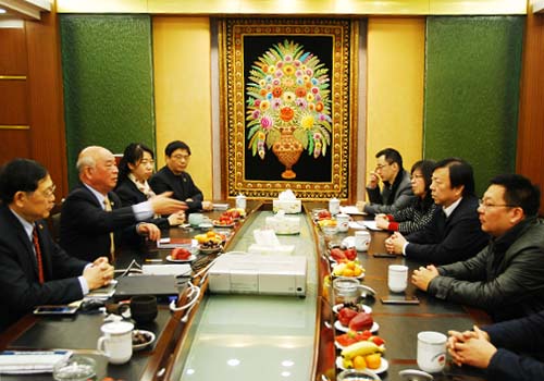 2015年元月1日,無錫市北塘區區委書記丁旭初一行走訪慰問朝陽集團,了解企業發展情況和存在的實際困難。朝陽集團董事長張海良、總經理楊興德等經營班子成員向北塘區領導介紹了朝陽集團發展建設情況。