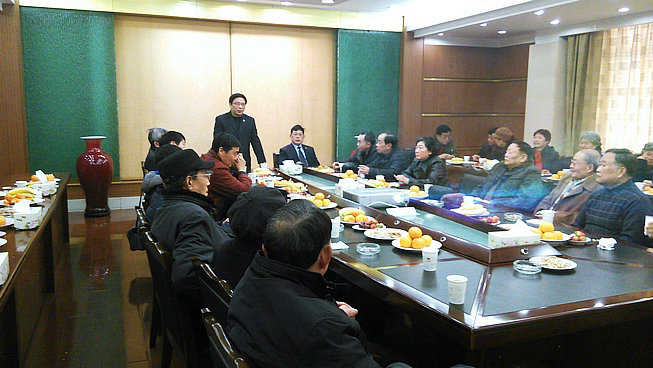 又是一年春來到,春意盎然年味濃。臨近羊年春節,無錫朝陽集團2015年退休幹部代表新年座談會今天上午在集團第二會議室舉行。近40位退休幹部代表濟濟一堂,許久不見的老同誌們互道問候,會議室裏喜氣洋洋,格外熱鬧。