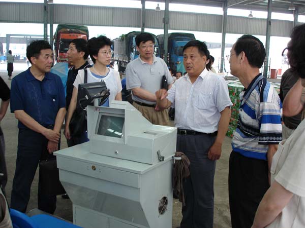 在市場,代表團聽取了朝陽股份有限公司副總經理、錫澄果菜副食品交易市場經理汪海良對錫澄市場近年來的建設、經營、管理和未來發展等方麵的介紹,重點聽取了汪經理對近年來朝陽股份公司在幹部任用上引進公開競聘機製優勝劣汰和工資改革上采用的“基礎工資+提成工資”的具體做法和取得的良好實效的介紹,並實地考察了錫澄市場2.5萬平方米的經營大廳,電子磅秤係統,電子監控係統和水果殘留農藥檢測情況。