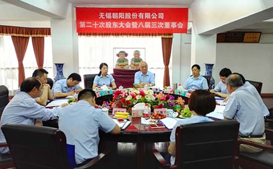 無錫朝陽股份有限公司第二十次股東大會暨八屆三次董事會於2016年7月8日在錫澄大廈五樓會議室隆重召開。會議由董事長張海良先生主持。 會議審議通過了《行政工作報告》、《財務工作報告》、《關於公司2014-2015年度利潤分配方案》、《監事會工作報告》、《關於修改公司章程的議案》、《關於繼續從稅後利潤中提取獎勵基金實施激勵的議案》、《關於確認吸收合並子公司無錫朝陽農產品大市場有限公司的議案》。 會議同意翟淩因工作需要提出辭去財務部長的請求,決定聘任錢浩淵為公司財務部長。 會議同意公司2016年度經營目標。 huiyixiangxinzaidongshihuidezhengquelingdaoxia,zaigongsiquantiganbuzhigongdegongtongnulixia,chaoyanggufengongsijianggaojucailanzidaqi,jinjinweiraoduiwujianshehexiandaihuapinpaishichangjianshedemubiaoyaoqiu,xihuaheluoshiwunianjihua,yongwangzhiqian,weidazao“百年朝陽”而不懈努力!