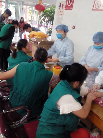 今天上午,在朝陽農貿市場,應無錫市衛計委要求,梁溪區疾控中心對朝陽農貿市場相關職業暴露人群流感病毒感染狀況進行監測。  據疾控中心醫生說,進行流感監測主要從易感人群入手,包括經常接觸雞、鴨、鵝等活禽和豬、牛、羊、豆製品等商品的攤主,目的是早發現、早治療,降低死亡率,保護人民生命健康和財產安全。該抽血檢測已持續三年,由200多名經營戶參與。