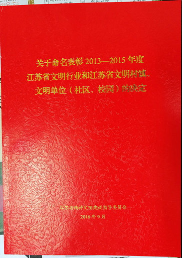 根據2016年9月蘇文明委[2016]10號文件精神,經江蘇省精神文明建設指導委員會複查審核確認,江蘇無錫朝陽集團股份有限公司繼續保留“江蘇省文明單位”榮譽稱號。