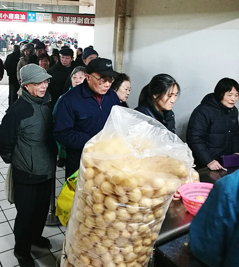 看到記者在拍照,許多老百姓都紛紛圍上來,爭著誇一誇,為“鬆鶴”油麵筋讚上一句,“質量好!”“味道好!”“比其他油麵筋清爽,經得起燒”“吃了好多年了,還是天天的好!”而工作人員則一刻不停得在忙著稱重、打包。大袋大袋的油麵筋“整裝待發”,金燦燦、油亮亮,讓人看著好生歡喜。快過年了,把這圓鼓鼓的油麵筋帶回家,一起共享闔家團圓的幸福和甜蜜吧!