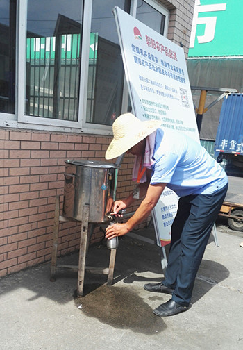 驕陽似火的七月,高溫預警不斷,連續38度du以yi上shang的de高gao溫wen天tian,極ji大da地di考kao驗yan著zhe朝chao陽yang農nong產chan品pin大da市shi場chang員yuan工gong們men的de意yi誌zhi。在zai集ji團tuan公gong司si領ling導dao第di一yi時shi間jian為wei市shi場chang員yuan工gong送song上shang夏xia日ri慰wei問wen品pin的de同tong時shi,朝chao陽yang股gu份fen公gong司si的de各ge項xiang防fang暑shu降jiang溫wen工gong作zuo也ye在zai積ji極ji推tui進jin。  在水果1號門、結算中心、水果業務部、配供車隊、蔬菜1號門、蔬菜保衛科等人員進出密集地,市場專門配備了茶水桶、大麥茶。每天由辦公室後勤班組人員燒好開水,幫助輸送到各個茶水點,為冒著高溫奮戰在經營一線的市場員工和客商消暑解渴。 安保部人員在露天環境下頂著烈日堅守崗位,公司為他們專門配備了草帽、應急藥箱,包括各類防暑藥品等,防患於未然。  食堂增設了綠豆湯、涼拌麵供應,在菜肴的花色品種上積極開動腦筋,力求做到清爽開胃,確保食品安全。 公司還為所有員工發放了礦泉水,在炎炎夏日為員工送上一份關愛和清涼,鼓勵員工以更頑強的意誌、更飽滿的精神投入到戰高溫、保供應活動中,全力確保高溫天的“菜籃子”、“果盤子”供應。
