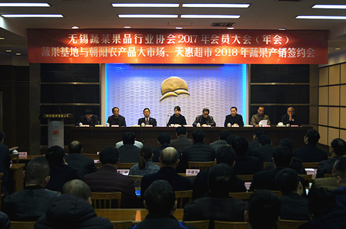 12月1日上午,無錫蔬菜果品行業協會2017年會員大會(年會)、蔬果基地與朝陽農產品大市場、天惠超市2018年蔬果產銷簽約會在朝陽農產品大市場隆重召開。領導、嘉賓與蔬菜果品行業協會人員、蔬果基地代表共200餘人出席會議。無錫日報、江南晚報、無錫商報、廣電新聞中心、經濟頻率、江南之聲等媒體記者應邀到會。 在蔬菜果品行業協會會員大會上,無錫蔬菜果品行業協會會長張君君作了《無錫蔬菜果品行業協會2017年工作總結》、《無錫蔬菜果品行業協會2018年主要工作設想》的報告;周介華副會長作了《無錫蔬菜果品行業協會2017年財務情況報告》;會議表彰了2016年——2017年協會工作積極分子。 zaisuihoujuxingdexiehuisijielishihuishang,zhangjunjunhuichangtichuleyingongzuoyuanyinciquhuichangzhiwudeqingqiu。quantilishiduizhangjunjunhuichangrenzhiqijiandezhuoyuegongzuogeiyulegaodupingjia。huiyibiaojuetongguolezhangjunjuntongzhidecizhiqingqiu,yizhitongyipinqingzhangjunjuntongzhidanrenwuxishucaiguopinxingyexiehuimingyuhuichang。huiyijueding:楊興德同誌任無錫蔬菜果品行業協會理事、常務理事、會長。 在緊接著舉行的蔬果基地與朝陽農產品大市場、天惠超市2018年蔬果產銷簽約會上,基地與朝陽農產品大市場簽訂了蔬果基地52504畝(蔬菜48350畝、水果4154畝)、蔬果商品量81970噸(蔬菜75300噸、水果6670噸)的產銷合作協議。蔬果基地與天惠超市合作多年,在這次簽約會上,共簽蔬菜基地57個,同比增加2個,種植麵積850畝,同比增加10%;簽約數量6200噸,同比增加4%。 市工商聯副主席王海寶出席會議並作重要講話。市民政局社團組織管理處處長袁衛東、市工商聯會員處副處長劉小兵亦應邀出席了會議。