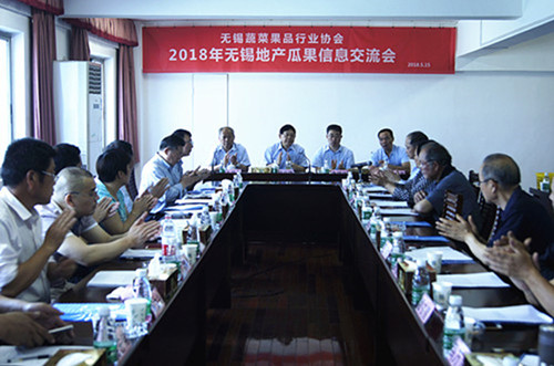5月15日上午,無錫蔬菜果品行業協會2018年無錫地產瓜果信息交流會在無錫朝陽農產品大市場召開。無錫市各水果生產基地領導、代表、江蘇無錫朝陽集團、無錫朝陽農產品大市場、無錫天惠超市股份有限公司有關領導出席了會議。無錫日報、江南晚報、廣電經濟頻道、江南之聲等媒體到會采訪報導。無錫蔬菜果品行業協會名譽會長、江蘇無錫朝陽集團股份有限公司董事長張君君在參加全市鄉村振興大會的間隙於中午親切看望了參會代表。