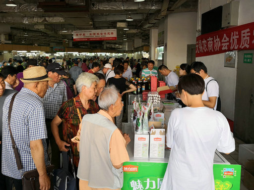 由無錫農商協會主辦、無錫朝陽集團協辦的無錫農商協會優質農產品展銷會,今天上午在無錫朝陽農貿市場一樓西南通道舉行。來自無錫市區、宜興市的12家農業企業參展商,為無錫市民奉上了一份優質農產品“大禮包”,品種豐富,涵蓋菜、果、禽、米、油、蛋、奶等幾大類。其中,有來自錫山區、惠山區家庭農場的千禧小番茄、荷蘭黃瓜,和無錫人最熟悉不過的陽山水蜜桃等蔬果;有來自江蘇省農業產業龍頭企業——江蘇維特凱鴿業的鴿子和鴿蛋;有來自宜興的大米、百合、筍幹等當地土特產,還有魅力廚房出品的剛需餐食類——新米粥係列等。 yizao,canzhanshangpinganggangshangjia,jiuxiyinlezhongduoxiaofeizhedemuguang。zaiyifanjiaoliuhewenjiahou,henduolaobaixinglimajiugoumaileyixiexinyideshangpin。zhanxiaohuidechenggongjuban,deyiyunongyelongtouqiyededaitouzuoyong,deyiyuhuiyuandanweidejijicanyu,deyiyuchaoyangnongmaoshichangdeyouzhikoubei。chaoyangnongmaoshichangtedixuanzeleyilourenliumijidetongdaozuoweizhanxiaodian,weicanzhanshangmianfeitigonghuache,laqixuanchuanhengfu,zaidianzipingshangdaxuanchuanbiaoyudeng,weizhanxiaohuideshunlijubanzuolechongfendezhunbeigongzuo。cicizhanxiaohuijiangchixudao6月15日,機會難得,不容錯過。