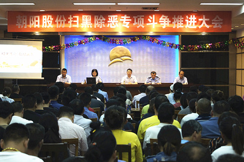 今年是開展掃黑除惡專項鬥爭的攻堅之年,也是關鍵之年。為進一步掃除黑惡犯罪,弘揚社會正氣,5月29日下午,無錫朝陽股份有限公司聯合劉潭派出所在二樓會議室召開掃黑除惡專項鬥爭推進大會。來自各市場、部門的客商、商戶、租賃戶等230餘人參加了此次大會。