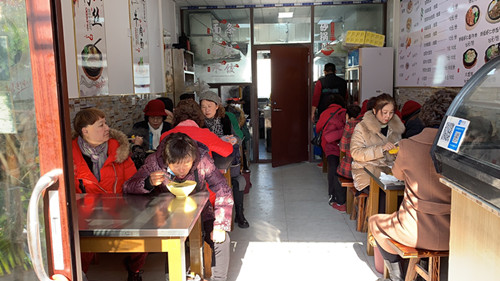 在二樓,走廊上掛滿了紅燈籠,原來近期又增加了八家美食店,隨便走近一家,生意紅火、座無虛席。“任記小吃店”主營快餐、炒菜、麵條、蒸菜;“幸福小管”主營羊肉、龍蝦、家常菜;“鮑汁脫骨雞”用整隻雞配米飯;還有“人可包子鋪”、“酸菜魚”等各種美食。來到朝陽美食樓,滿足你的味蕾。(朱亮)