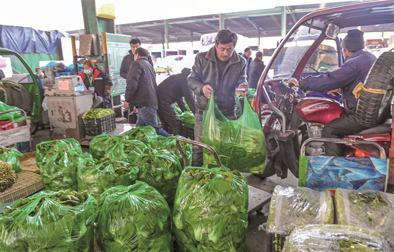 從市價格監測認定中心對市區十家農貿市場的監測數據來看,蔬菜、豬肉、雞蛋的價格均處於回落中。8日,43個蔬菜監測品種每斤均價6.51元,較春節前下跌0.91%。“為確保市場供應量足價穩,我們落實了蔬菜產地、基地儲備,批發市場動態儲備,天惠超市配供中心庫存儲備的三級儲備機製。”朝陽農產品大市場相關負責人介紹,在雨雪天氣之前主動銜接各生產基地,調節貨源,提前備貨,還加大了白菜、白蘿卜等自營商品到位力度(如圖)。