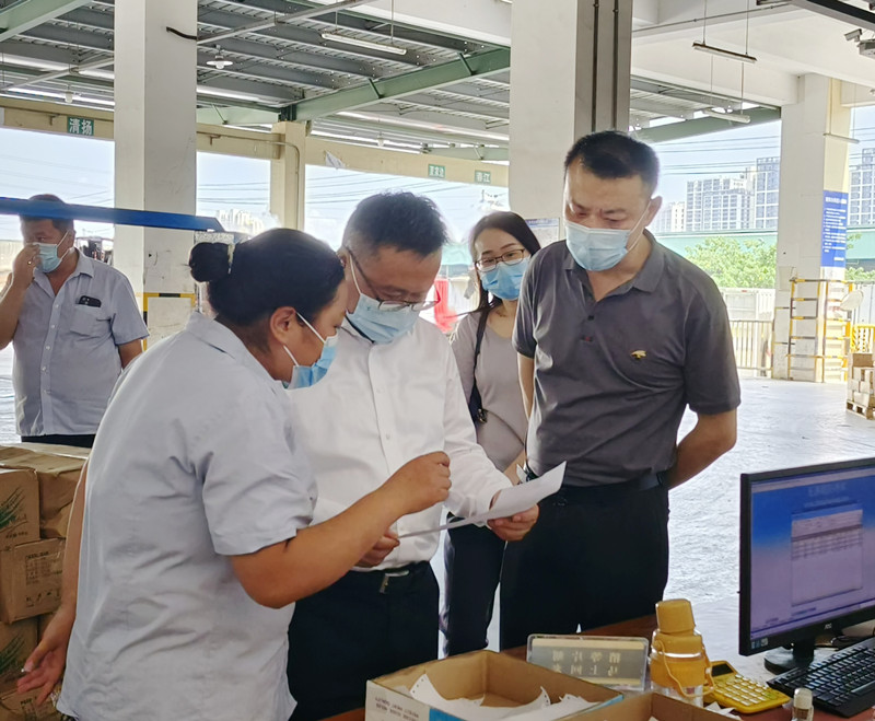 檢查組一行首先來到陳列館、信息中心,全麵了解了市場的建設發展情況,以及市場通過信息化大數據平台,開展科學防疫、精準管控的具體舉措。隨後檢查組又實地參觀了檢測中心、結算中心、蔬菜、水果兩大市場、冷庫和糧油市場,對市場在疫情期間認真履行保供穩價的社會職責、確保食用農產品安全表示肯定。