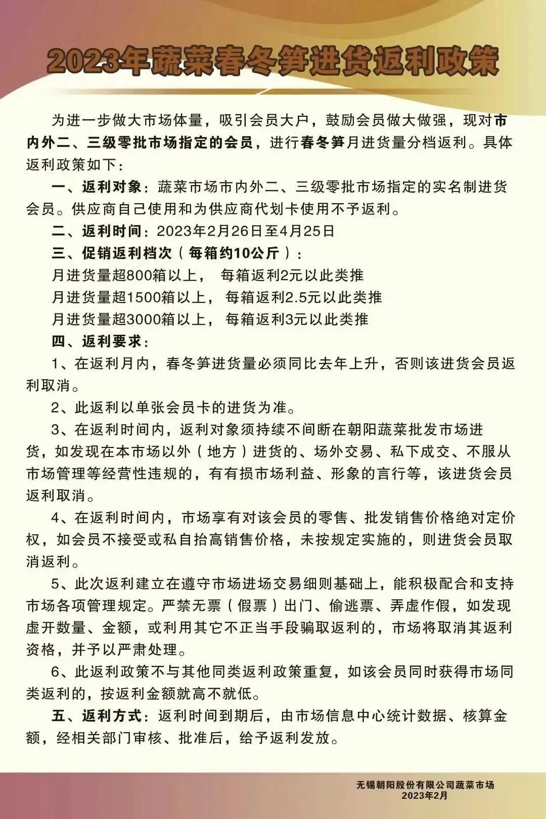 在3、4月(yue)份(fen),市(shi)場(chang)還(hai)針(zhen)對(dui)春(chun)冬(dong)筍(sun)進(jin)貨(huo)會(hui)員(yuan)施(shi)行(xing)返(fan)利(li)政(zheng)策(ce),月(yue)進(jin)貨(huo)量(liang)達(da)標(biao)的(de),分(fen)三(san)檔(dang)進(jin)行(xing)促(cu)銷(xiao)返(fan)利(li),鼓(gu)勵(li)會(hui)員(yuan)做(zuo)大(da)做(zuo)強(qiang),歡(huan)迎(ying)廣(guang)大(da)會(hui)員(yuan)前(qian)來(lai)多(duo)多(duo)拿(na)貨(huo)。 (供稿:張柯宇) |