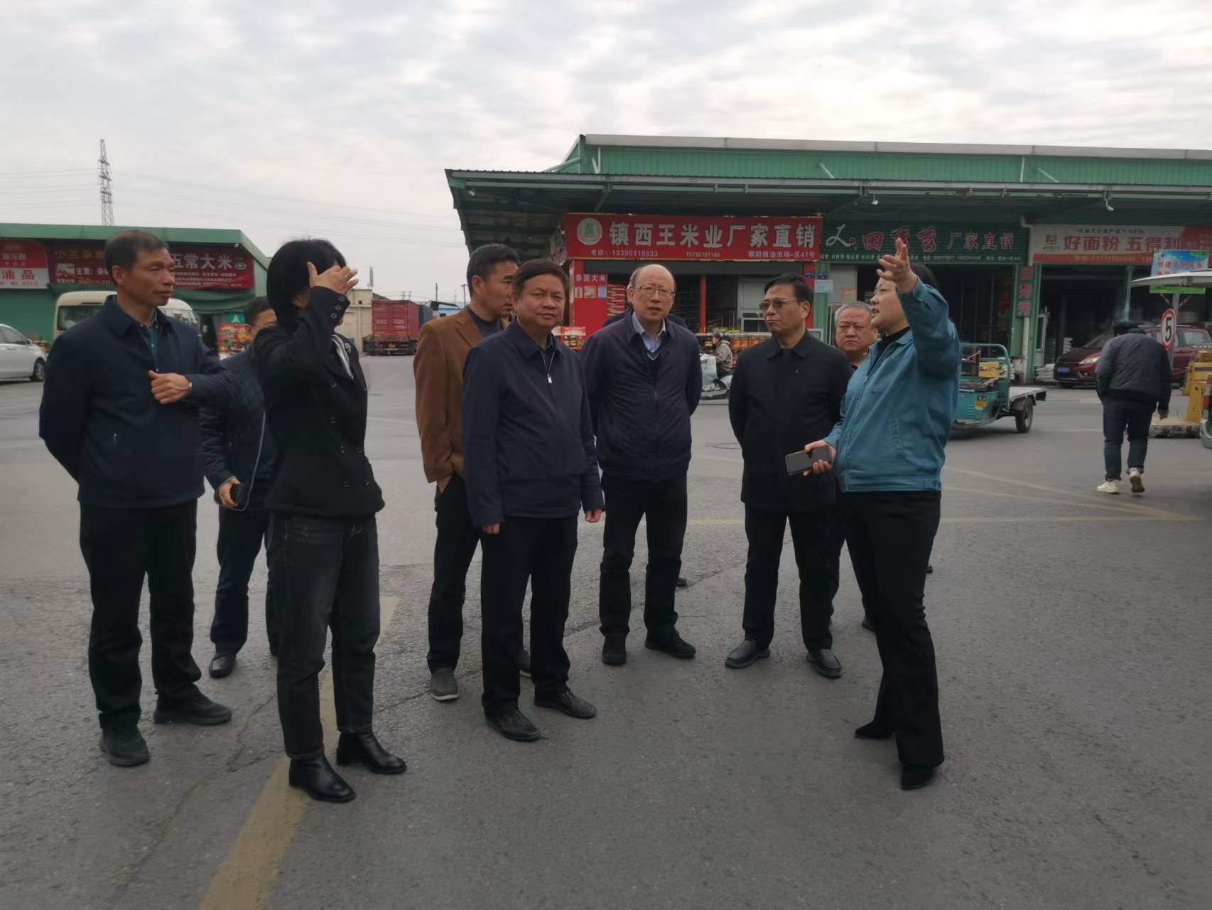 3月29日上午,連雲港市糧食和物資儲備局許彬山副局長一行10人,在無錫市糧食和物資儲備局王元副局長等領導的陪同下,到朝陽糧油市場走訪調研。朝陽糧油市場董事長錢韌、總經理楊敏熱情接待來訪領導一行。 來訪領導參觀糧油倉庫、經營戶,天惠配供倉庫等,了解大米在批發、零售環節的銷售情況,以及協商與天惠超市合作開展糧食保供應急演練事宜。