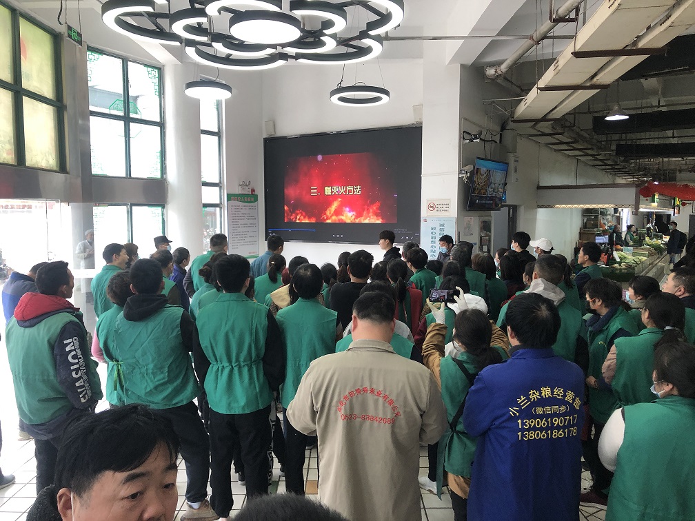 4月8日中午,朝陽農貿市場組織市場員工和經營戶開展消防安全培訓活動,大家觀看了消防安全“四懂三會”的視頻,並由市場副經理遊興鬆詳細地講解了火災的預防及處理方法,給大家都敲響了警鍾。
