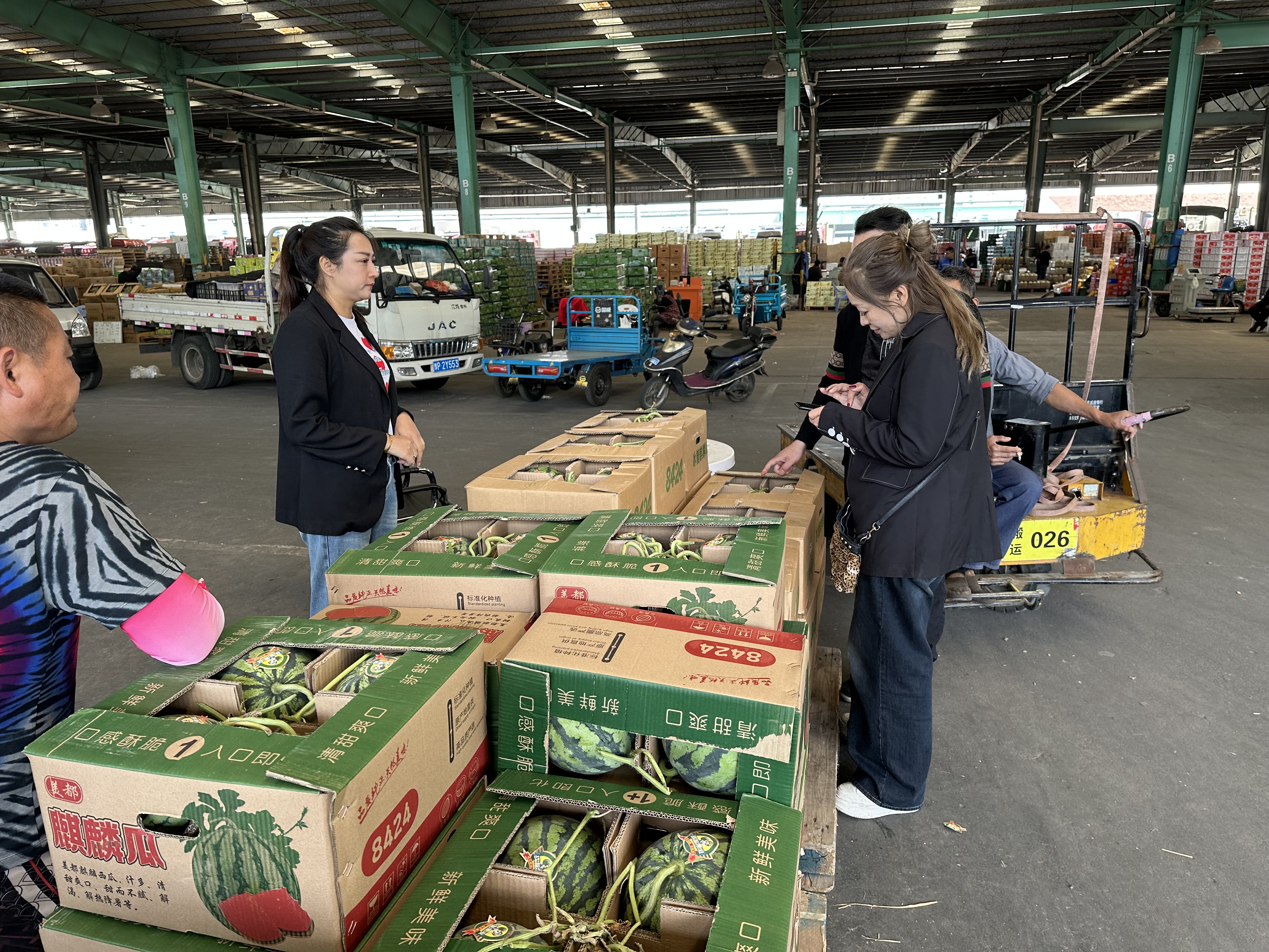在氣溫因素和價格因素的推動之下,西瓜目前已占據了市場交易的頭把交椅。近一周內西瓜類日均交易量已超過600噸,約占水果市場交易總量的25%,與上月同期相比上升了15%左右,隨著天氣升溫,到六月預計將達到40%左右。在水果市場交易量排名前五的品種中,麒麟瓜、花皮西瓜、特小鳳分列第一、第三、第五位。