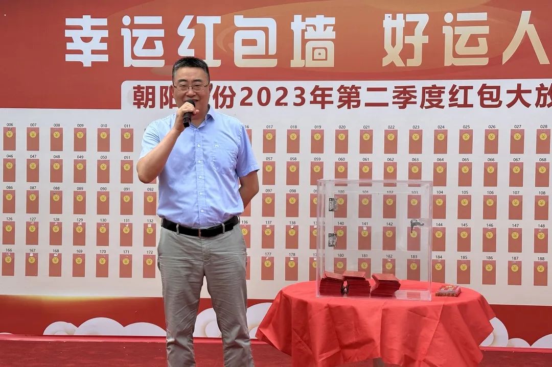 為回饋一路相伴同行的廣大會員朋友,增加會員凝聚力,增強與會員的互動,調動廣大會員進貨積極性,7月10日朝陽股份隆重舉行第二季度紅包大放送活動。本次活動分別邀請蔬菜、水果兩大市場第二季度進貨額排名前200名的會員參與抽獎。
