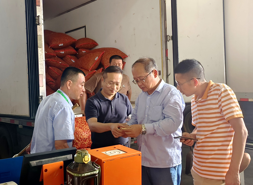 8月6日下午,廣西新柳邕農產品批發市場有限公司董事長元柏鴻率隊一行3人到朝陽農產品大市場參觀考察。朝陽股份總經理朱健祥、顧問秦雄熱情接待了來訪一行。