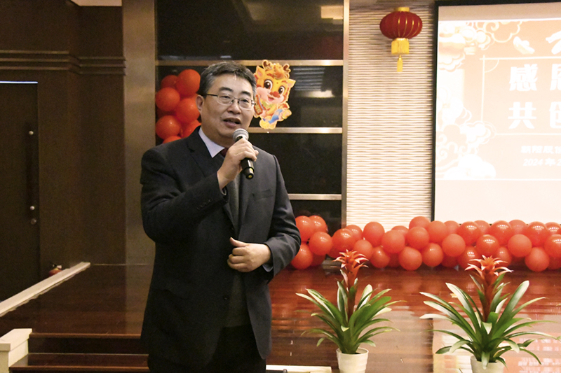 2月23日(正月十四)上午10:30,朝陽股份在錫澄大廈二樓會議室舉辦了2024龍年新春茶話會。朝陽集團創始人、朝陽股份董事長張海良先生、朝陽集團董事長張慶卿先生攜集團經營班子領導、朝陽股份班子成員、天惠超市班子成員及基層部門代表、客商會員代表近120人歡聚一堂,回顧合作成果,展望未來機遇,共敘美好情誼。會議由集團黨委書記、工會主席、朝陽股份總經理朱健祥主持。