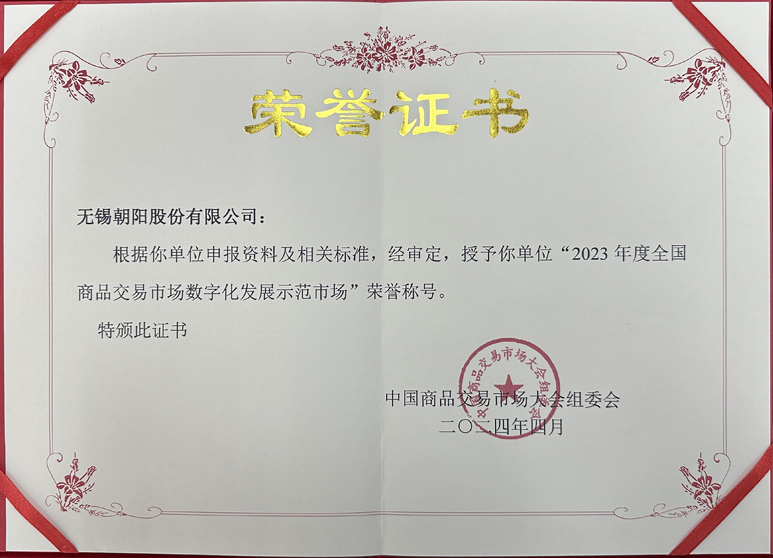 無錫朝陽股份有限公司榮獲“數字化發展示範市場”稱號