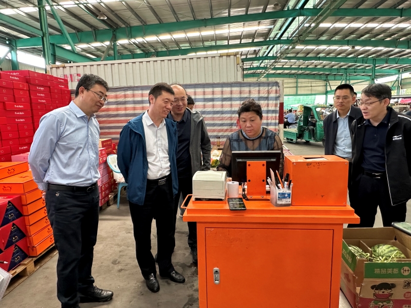 在朱總的陪同下,雷司長依次參觀考察了朝陽陳列館、信息中心、檢測中心、結算中心及水果市場,對大市場經營管理、建設發展情況、電子化交易結算、大數據平台等方麵所作的探索與實踐等進行詳細調研。