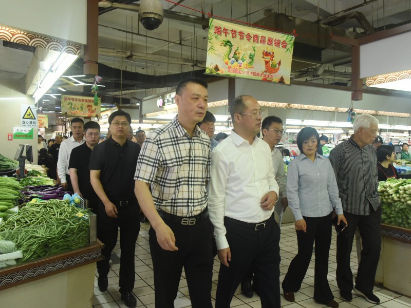 6月6日上午,無錫市梁溪區區委書記朱剛一行來到無錫朝陽農貿市場,進行全麵的端午節前檢查工作。無錫朝陽集團董事長張慶卿、總經理楊興德全程陪同檢查。