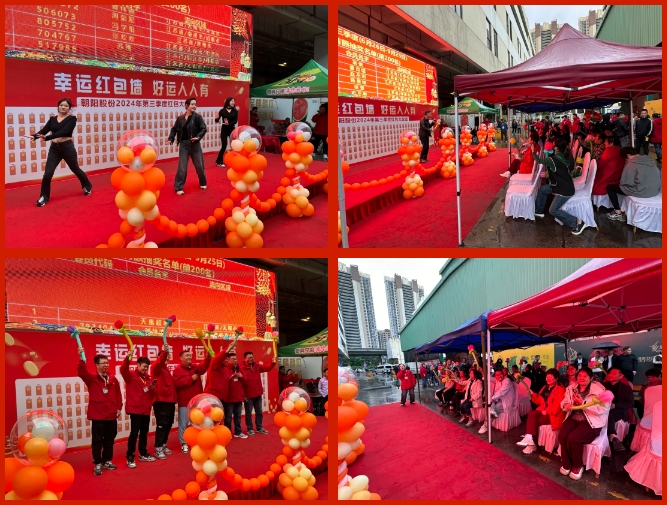 10月7日,朝陽股份隆重舉行2024年第三季度紅包大放送活動,雖秋雨綿綿,但絲毫未減會員們參與的熱情,活動開始前大家就滿心期待地聚集在台下,歡聲笑語中洋溢著對幸運降臨的憧憬,秋雨帶來的涼意仿佛也被這份熱情所融化。