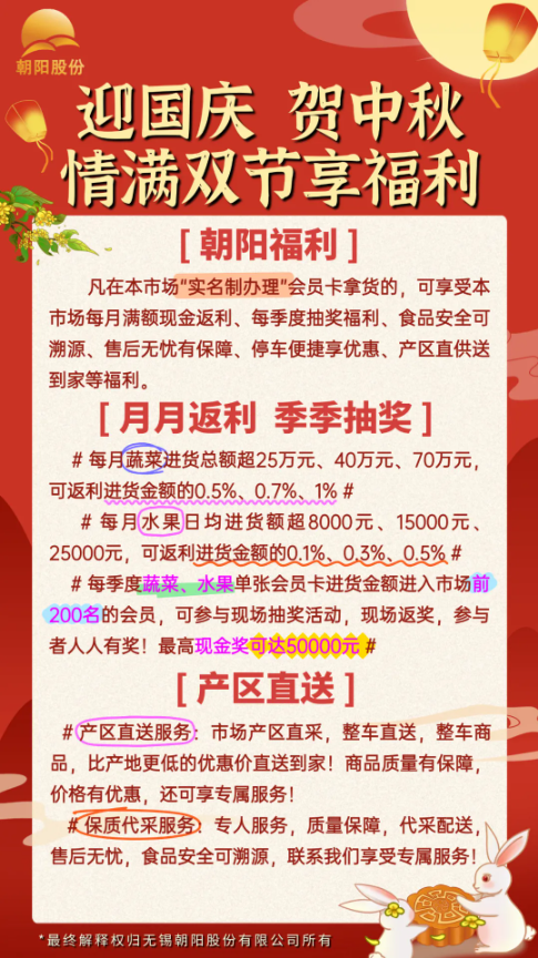 國慶旗將紅,中秋月漸圓! 雙節同慶的熱鬧裏, 怎麼少得了新鮮水果的甜? 朝陽水果批發市場 雙節專屬促銷已上線, 為你的團圓宴、走親禮 備好滿滿 “果” 力!           想給家人朋友送心意?市場能定製水果禮盒! 挑好新鮮菜果,搭配成盒,體麵又健康! 中秋走親戚、國慶訪好友,拎著超有範兒。 而(er)且(qie)市(shi)場(chang)早(zao)早(zao)就(jiu)為(wei)雙(shuang)節(jie)做(zuo)足(zu)準(zhun)備(bei),不(bu)僅(jin)新(xin)增(zeng)了(le)清(qing)晰(xi)的(de)引(yin)導(dao)標(biao)識(shi),還(hai)掛(gua)滿(man)了(le)鮮(xian)豔(yan)的(de)紅(hong)旗(qi)與(yu)節(jie)日(ri)橫(heng)幅(fu),紅(hong)綢(chou)隨(sui)風(feng)飄(piao)動(dong),果(guo)香(xiang)伴(ban)著(zhe)喜(xi)慶(qing),一(yi)進(jin)市(shi)場(chang)就(jiu)能(neng)感(gan)受(shou)到(dao)濃(nong)濃(nong)的(de)雙(shuang)節(jie)氛(fen)圍(wei),采(cai)購(gou)時(shi)連(lian)心(xin)情(qing)都(dou)跟(gen)著(zhe)熱(re)鬧(nao)起(qi)來(lai)! 這個雙節,囤新鮮、享優惠、送好禮,就來朝陽農產品大市場,讓新鮮菜果,把節日氛圍拉滿! (供稿:張柯宇) |