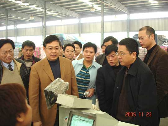 11月23日,浙江省農林廳產業信息處組織浙江省農產品產銷協會、浙江省市場協會一行60多人,在江蘇省農林廳、無錫市農業局領導的陪同下,到無錫朝陽農產品大市場參觀考察。