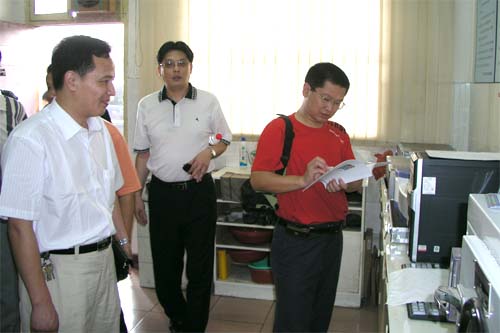 無錫朝陽集團信息中心主任陳建新、辦(ban)公(gong)室(shi)副(fu)主(zhu)任(ren)鄒(zou)念(nian)祖(zu)分(fen)別(bie)向(xiang)客(ke)人(ren)們(men)介(jie)紹(shao)了(le)集(ji)團(tuan)發(fa)展(zhan)規(gui)劃(hua)和(he)集(ji)團(tuan)信(xin)息(xi)化(hua)建(jian)設(she)情(qing)況(kuang)。在(zai)朝(chao)陽(yang)蔬(shu)菜(cai)市(shi)場(chang)農(nong)藥(yao)殘(can)留(liu)檢(jian)測(ce)室(shi),客(ke)人(ren)們(men)向(xiang)檢(jian)測(ce)中(zhong)心(xin)主(zhu)任(ren)王(wang)任(ren)茂(mao)詳(xiang)細(xi)詢(xun)問(wen)了(le)網(wang)絡(luo)化(hua)檢(jian)測(ce)係(xi)統(tong)的(de)使(shi)用(yong)情(qing)況(kuang)。 |