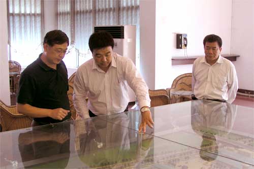 朝陽集團總經理楊興德、朝陽股份公司總經理錢韌陪同客人參觀,雙方就共同關心的企業發展規劃、市場建設、市場信息化等方麵進行了深入交流。